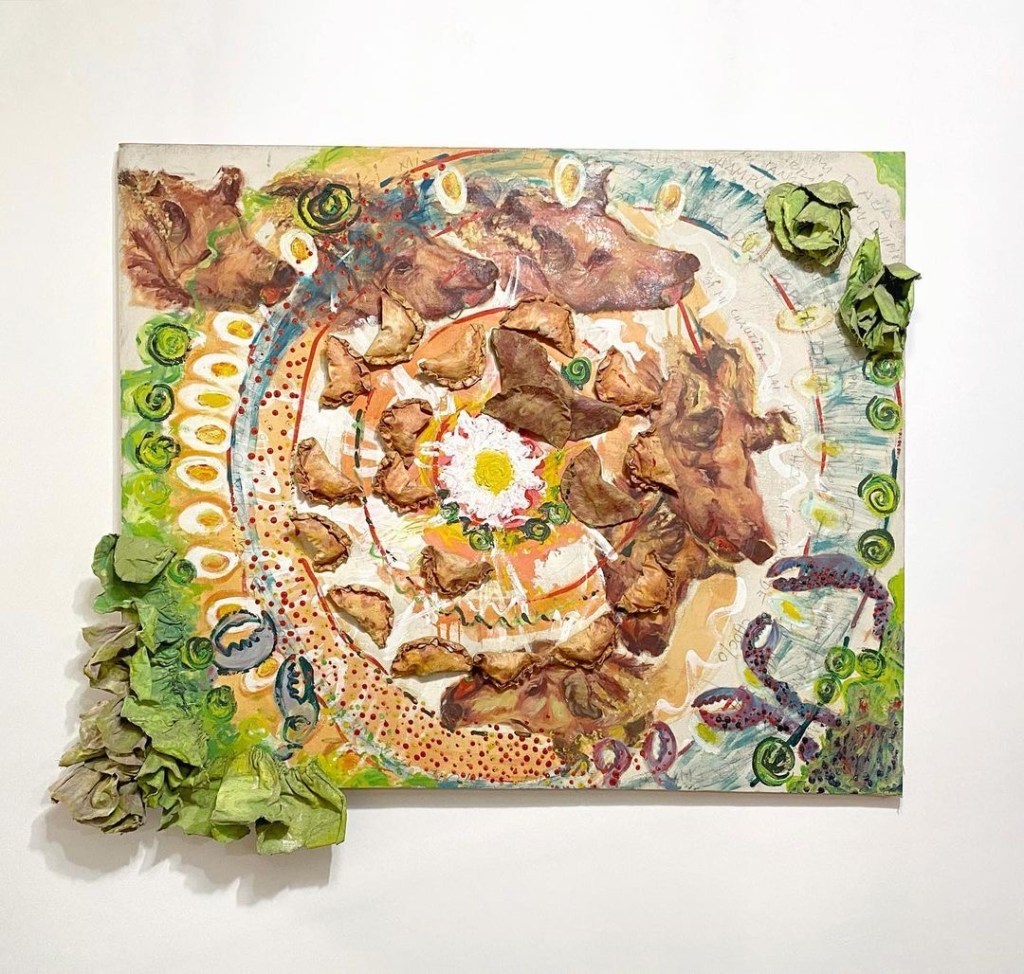 En esta etapa la artista aborda una visualidad relacionada con lo “kitsch” (lo cursi-popular), están presentes comentarios que atraviesan posiciones de género y que dan cuenta de una condición subalterna de lo femenino, condición que se proyecta en todos los espacios de la vida cultural de la sociedad ecuatoriana. Al respecto de los trabajos presentados en la exposición individual en La Galería en 1993, la crítica e historiadora de arte Trinidad Pérez sostiene que, en este momento, la obra adquiere “una fuerza contestataria mayor a través de la utilización de códigos culturales identificables masivamente, provocando un cuestionamiento a una serie de mitos a nivel político, social y cultural”.